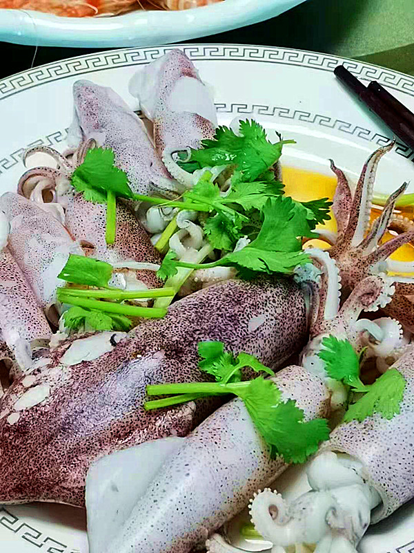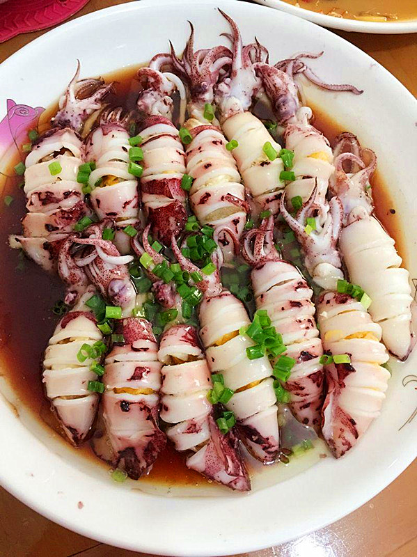 天然野生灯光小鲜鱿吃法很多,因为这种灯光鱿鱼浮于水面,鱿肚里没有沙子,可以直接清蒸、白灼、姜葱焗炒、椒盐炸等。