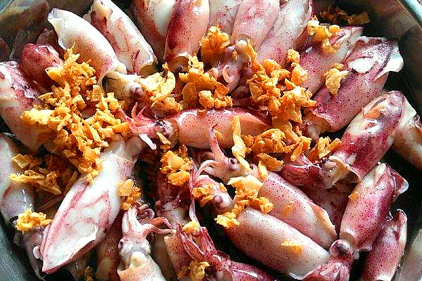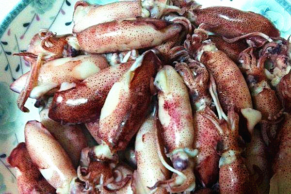 灯光小鱿鱼是不适合去肚处理的,去肚就很浪费啦!因为肚里有糕,而鱿鱼墨也是可以吃的,我们这边地道做法就是保留鱿鱼肚和鱿鱼墨一起制作来吃的。
